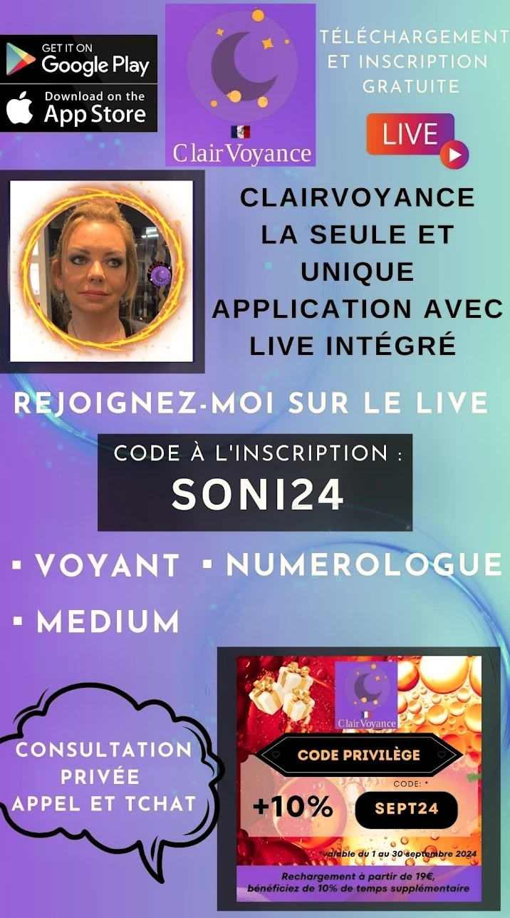 Code affiliation: SONI24 et je vous offrirai une question détaillée sur mon live horoscope qui a lieu chaque matin à 9h15 sur l'application ClairVoyance